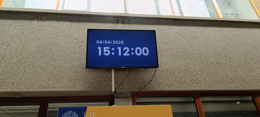 Avant l’affichage était géré par un ordinateur Windows avec le contenu d’un dossier qui tournait sur VLC en boucle. L’affichage n’était pas facilement éditable et configurable ; Pas forcément accessible à distance, donc il était obligatoire de se déplacer pour modifier le contenu. L’ordinateur, malgré le fait qu’il soit dans un local fermé, avait une session ouverte en permanence, avec potentiellement un risque d’accès à des données confidentielles par n’importe qui.