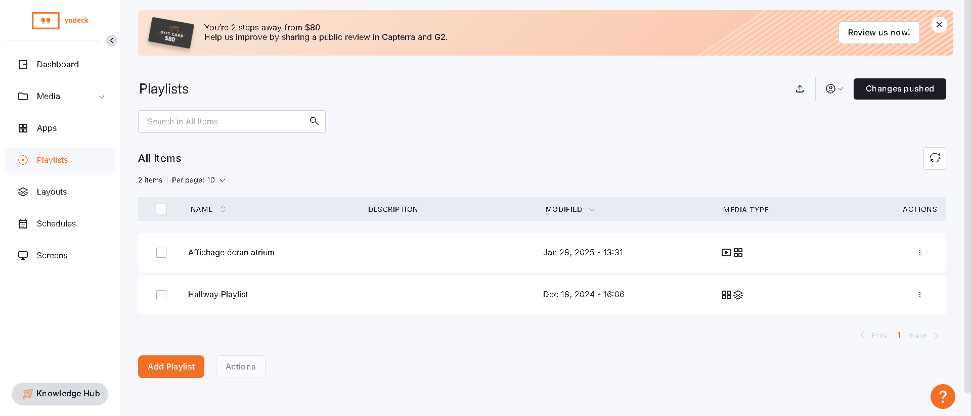 - Accessibilité à distance 24/7 simple : Yodeck est entièrement configurable via tableau de bord sur app web.