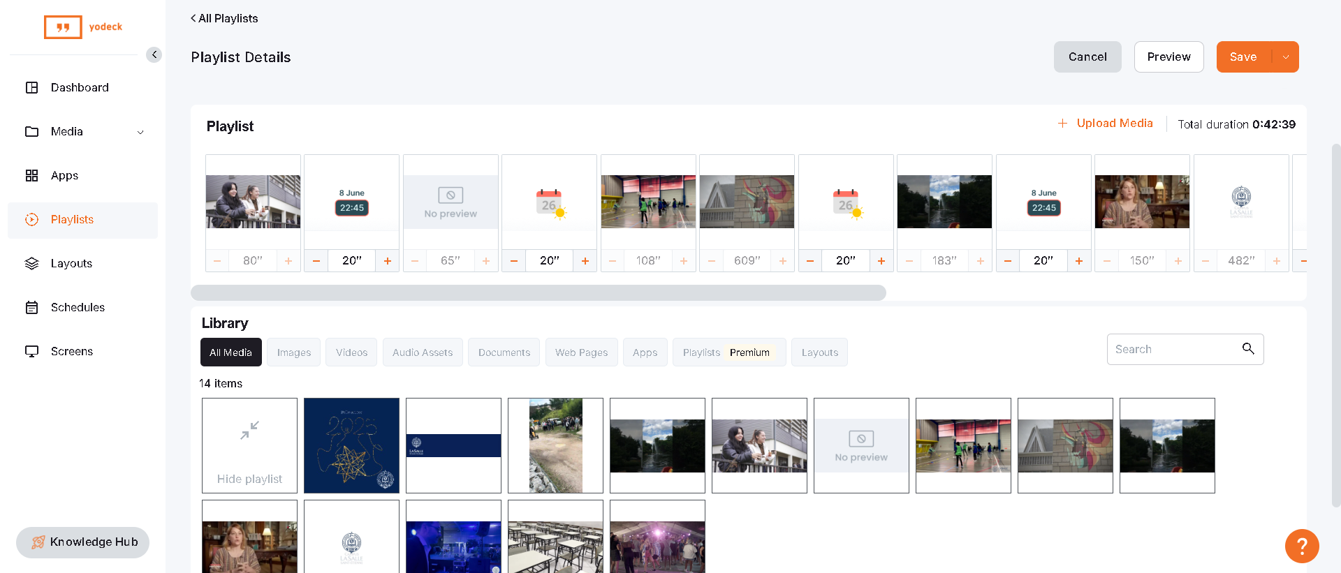 J’ai effectué plusieurs recherches à ce sujet et j’ai naturellement choisi la solution Yodeck car elle avait déjà été reconnue dans des universités et offrait donc des options supplémentaires en adéquation avec un affichage dans un ensemble scolaire, mais aussi, répondait pleinement au cahier des charges :